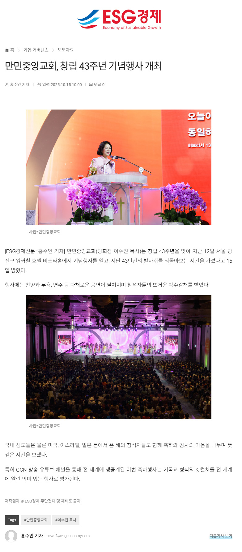 [K°æÂûÀϺ¸]¸¸¹ÎÁß¾Ó±³È¸(´çȸÀå À̼öÁø ¸ñ»ç), ⸳ 43Áֳ⠱â³äÇà»ç '±âµ¶±³ K-ÄÃó Àü¼¼°è¿¡ ¾Ë·Á' "½Å¾Ó°ú