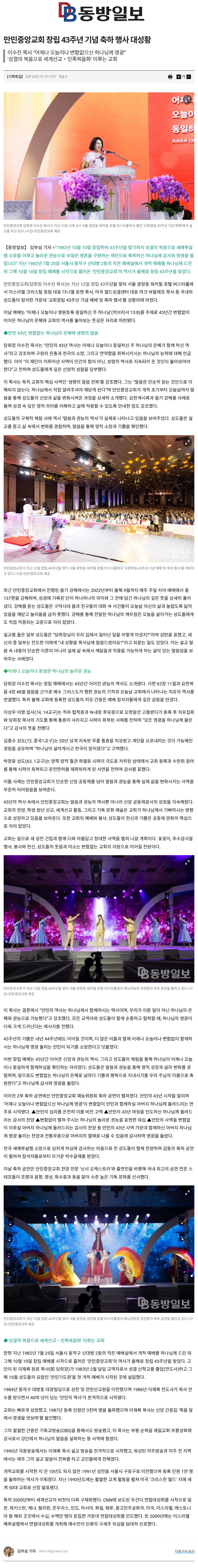 [K°æÂûÀϺ¸]¸¸¹ÎÁß¾Ó±³È¸(´çȸÀå À̼öÁø ¸ñ»ç), ⸳ 43Áֳ⠱â³äÇà»ç '±âµ¶±³ K-ÄÃó Àü¼¼°è¿¡ ¾Ë·Á' "½Å¾Ó°ú