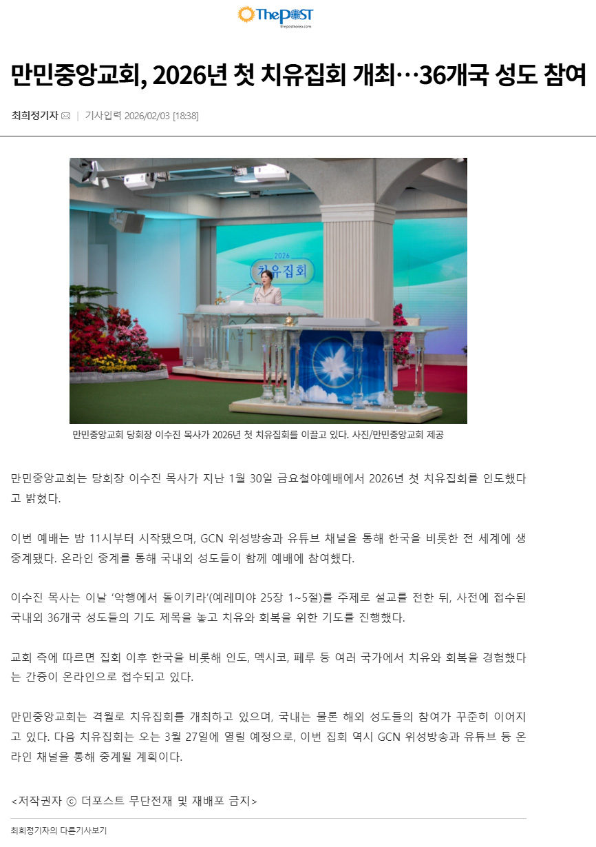 ¸¸¹ÎÁß¾Ó±³È¸, 2026³â ù Ä¡À¯Áýȸ