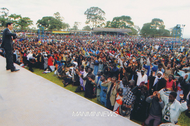 Over 120,000 people gathered at a "Handkerchief Crusade" took place in Kitale region of Kenya on April 29 ~ 30, 2006. Kitale Stadium was packed with countless people even before the Crusade kicked off on the first day, and the stage was filled with a myriad of people who wished to testify to their healing after receiving prayer with the handkerchief on which Senior Pastor Rev. Dr. Jaerock Lee had prayed (Acts 19:11-12). Dozens of churches in the region became Manmin branch churches. Today in Africa, there are 3,856 Manmin branch churches working together as one to spread the gospel of Jesus Christ.