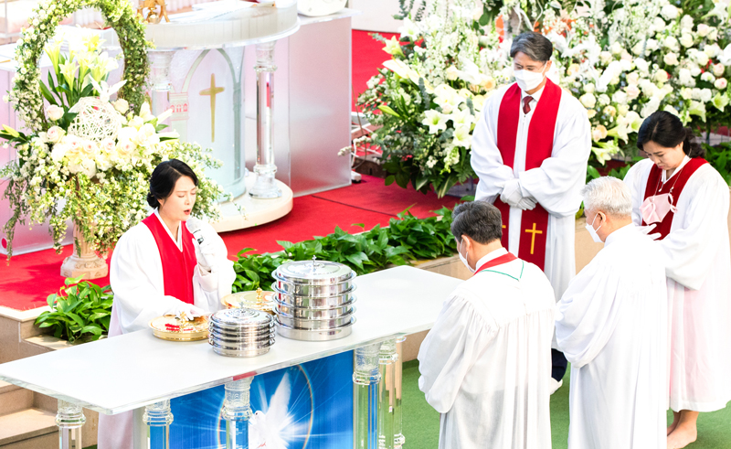 In addition, at the evening service, Acting Senior Pastor Dr. Soojin Lee preached on how to make bread of God's Word, through the sermon entitled 'How to eat the Lamb'(John 6:53~55; Exodus 12:8~10), and then she led the Holy Communion.
