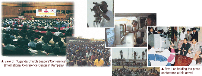 Meanwhile, the press such as "The Monitor"and "The New Vision" as well as Local TV and radio station like Uganda National Broadcasting Station ?Uganda TV? covered and went news related with Rev. Lee from his arrival to the crusade's end on air. WBS TV and POWER FM broadcast the crusade to all over the country. It was assumed that about 15 millions or 20 millions people watched or heard it. In addition, Channel 4 of the United Kingdom and CNN, worldwide news broadcasting station covered related news and broadcast to all over the world. So it is evaluated as a chance to let the world know the spiritual leadership of Korean Church. Bishop Grivas Musisi, director of Arrangement Committee who generalized this event said, "The living God was proclaimed to Ugandan people through this conference and crusade. And it could be a start of Ugandan churches to be united and of church leaders to repent before God and develop for African Mission. I would like to ask Rev. Lee from the bottom of my heart to come again next year and lead the crusade." ?2000 Uganda Church Leaders'Conference and Crusade? is evaluated that it fulfilled the great duties for the union of Ugandan churches and for the nongovernmental diplomacy between Uganda and Korea.