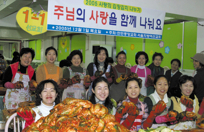 From Tuesday, November 29, to Thursday, December 1, Women's Mission sponsored and ran the "Sharing Kimchi with the Neighbors" campaign. By pickling an assortment of 3000 heads of cabbages and other vegetables into Kimchi , a traditional and popular Korean side dish, and distributing them to many neighbors including the elderly living in solitude and teenage leaders of families, the Women's Mission put into practice the love of our Lord.