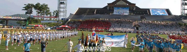 "The 2006 Church-wide Summer Retreat" took place at Jumping Park in the Muju Resort in Jeonbuk Province, August 7-9, 2006. The Retreat, attended by members of the base church in Seoul and branch churches throughout Korea, was a profound event at which the participants could experience God's manifestations of signs and wonders and nurture their faith. Just as God had kept safe the land of Goshen in which the people of Israel were living (Exodus 8:22), God kept His eyes on the site of the Retreat where the recording of "GCN Special Praise Service" was held on the first day, lectures on the second day, and the athletic competition on the third and final day. As God shielded the site of the Retreat from typhoons and rains, kept the place cool with breezes and clouds, and kept away mosquitoes and other insects in the middle of summer, participants experienced firsthand Biblical miracles without enduring the scorching heat. When Senior Pastor Rev. Dr. Jaerock Lee prayed for the sick from the stage after proclaiming a message titled "True Blessings" (3 John 1:2), countless people at once testified to their healing of a variety of diseases and infirmities. Furthermore, as participants witnessed a myriad of insects swarming their way but dropping to the ground, Manmin members reaffirmed the love of God who was keeping His fiery eyes on them.