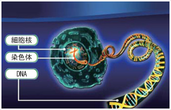 神ã¯ç´°èƒžæ ¸ã®ä¸ã«ã€ã™ã¹ã¦ã®éºä¼æƒ…å ±ãŒè¡¨ç¤ºã•れãŸã€Œè¨è¨ˆå›³ã€ã®ã‚ˆã†ãªDNAã‚’ç½®ã‹ã‚Œã¾ã—ãŸã€‚DNAã¯ã¾ã‚‹ã§ç³¸ã®ã‚ˆã†ã«é•·ãã¤ãªãŒã£ã¦ã„ã¦ã€ã“れを染色糸ã¨è¨€ã„ã¾ã™ã€‚ãã—ã¦ã€ç³¸ã‚’糸巻ãã«å·»ã„ãŸã‚ˆã†ã«ã€æŸ“色糸ã§ã³ã£ã—りã¨å·»ã‹ã‚Œã¦ã„ã¾ã™ã€‚ã“ã®ã‚ˆã†ã«æŸ“è‰²ç³¸ãŒæŠ˜ã‚Šç•³ã¾ã‚Œã¦ã„ã‚‹ã‚‚ã®ã‚’染色体ã¨è¨€ã„ã¾ã™ã€‚