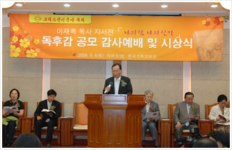 Áö³ 9¿ù 6ÀÏ, ÀÌÀç·Ï ¸ñ»ç ÀÚ¼Àü '³ªÀÇ »î ³ªÀÇ ½Å¾Ó'(Å©¸®½ºÃ® ½Å¹®»ç ÊÊ)¿¡ ´ëÇÑ µ¶Èݨ °ø¸ð ½Ã»ó½ÄÀÌ Çѱ¹ ±âµ¶±³ ȸ°ü¿¡¼ ÀÖ¾ú´Ù.