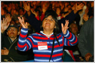 Áö³ 11¿ù 30ÀÏ, Æä·çÀÇ ¼öµµ ¸®¸¶¿¡ µµÂøÇÑ ÀÌÀç·Ï ¸ñ»ç´Â ´ëÅë·É ±ÃÀ» ¹æ¹®ÇÏ¿© Åç·¹µµ ´ëÅë·ÉÀ» ¸¸³ª ȯ´ãÀ» ³ª´« ÈÄ, ´ëÅë·É°ú Æä·ç¸¦ À§ÇÏ¿© Ưº°È÷ ±âµµÇØ ÁÖ¾ú´Ù. ¼ºÈ¸ ±â°£ µ¿¾È Æä·ç ±³È¸ ÆÀÀÇ ¿Á¤ÀûÀÎ Âù¾ç°ú ¸¸¹ÎÁß¾Ó±³È¸ ¿¹´É ÆÀÀÇ ºÎäÃã ¹× ½ºÆäÀξî Âù¾ç µî ¼öÁØ ³ôÀº ´Ùä·Î¿î °ø¿¬ÀÌ ÆîÃÄÁ® Àå³»´Â ½ÃÁ¾ °¨µ¿°ú ÃàÁ¦ ºÐÀ§±â¿´´Ù. °»ç ÀÌÀç·Ï ¸ñ»ç´Â 3ÀÏ °£ÀÇ Áýȸ¸¦ ÅëÇØ "âÁ¶ÁÖ Çϳª´Ô", "¿¹¼ö°¡ ¿Ö ¿ì¸®ÀÇ ±¸¼¼ÁÖ°¡ µÇ½Ã´Â°¡?", " ¼º·ÉÀÇ ±Ç´É"¿¡ ´ëÇÑ ¼³±³¸¦ ÇÏ¿´´Ù. °»ç ÀÌÀç·Ï ¸ñ»ç°¡ ¸»¾¸À» Áõ°ÅÇÒ ¶§¸¶´Ù Âü¼®ÇÑ ±ºÁßµéÀº »ý¸íÀÌ ³ÑÄ¡´Â ¿µÀûÀÎ ¸»¾¸¿¡ ½ÃÁ¾ ¹Ú¼ö·Î È´äÇÏ¿´´Ù. ¼³±³¸¦ ¸¶Ä£ ÈÄ °»ç ÀÌÀç·Ï ¸ñ»ç´Â ´Ü¿¡¼ Àüü ȯÀÚ¸¦ À§ÇØ ±âµµ¸¦ ÇÏ¿´´Âµ¥ ªÀº ±âµµ¸¦ ÅëÇÏ¿© ±ÞÇÏ°í °ÇÑ ¼º·ÉÀÇ ±Ç´ÉÀÇ ¿ª»ç°¡ ¶ß°Ì°Ô ÆîÃÄÁ³´Ù. ù³¯ºÎÅÍ ¼ºÈ¸ Àå¼Ò¿¡´Â ¼³±³¸¦ µè´Â Áß¿¡ ÀÌ¹Ì Ä¡·á¸¦ üÇèÇÏ¿© ÈÙü¾î¿Í ¸ñ¹ßÀ» ¹ö¸®°í ±â»µÇÏ¸ç °É¾î´Ù´Ï´Â »ç¶÷µéÀ» ¸ñµµÇÒ ¼ö ÀÖ¾ú´Ù. À̳¯ ȯÀÚ ±âµµ¸¦ ¹Þ°íAIDS¸¦ ºñ·ÔÇÑ ´ç´¢º´, ¾Ï, Áßdz, ½Ã·Â ÀúÇÏ µî ¼ö¸¹Àº ȯÀÚµéÀÌ Áúº´À» Ä¡·á¹Þ¾Æ´Ü¿¡ ¿Ã¶ó¿Í °£ÁõÇÏ¿´´Ù. ¾î¶² »ç¶÷Àº TV¸¦ ½ÃûÇÏ´ø Áß Ä¡·á¹Þ°í ¼ºÈ¸ Àå¼Ò¸¦ ã¾Æ ¿Â °æ¿ìµµ º¼ ¼ö ÀÖ¾ú´Ù. µÑ° ³¯°ú ¼Â° ³¯ ¿ª½Ã °ÈÁö ¸øÇß´ø ¼ö¸¹Àº »ç¶÷µéÀÌ ÈÙü¾î¿¡¼ ÀϾ °È±â ½ÃÀÛÇÏ¿´°í, º¸Áö ¸øÇÏ¿´´ø ´«ÀÌ ½Ã·ÂÀ» ȸº¹ÇÏ¿´À¸¸ç, µé¸®Áö ¾Ê´ø ±Í°¡ µé¸®´Â µî »ì¾Æ°è½Å Çϳª´ÔÀÇ ¿ª»ç¸¦ üÇèÇÏ°í ´«¹°À» È긮¸ç ±â»µÇÏ´Â ¸ð½ÀÀ» º¼ ¼ö ÀÖ¾ú´Ù.