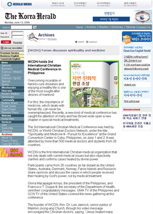 The 3rd International Christian Medical Conference was held by WCDN, or World Christian Doctors Network, under the title "Spirituality and Medicine III - Pursuit for Excellence" at the Grand Convention Center in Cebu, Philippines, on June 1 and 2. It was attended by more than 500 medical doctors and students from 26 countries.