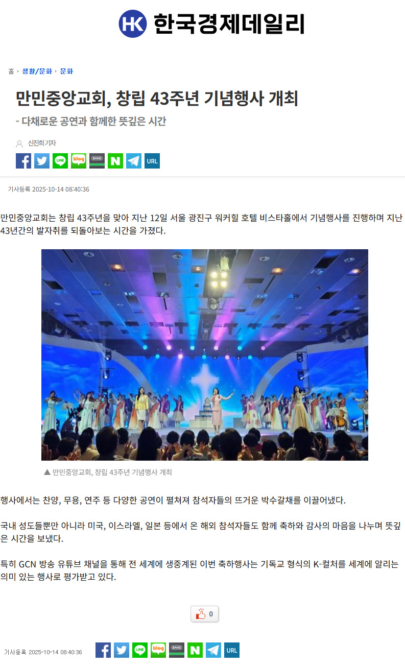 [K°æÂûÀϺ¸]¸¸¹ÎÁß¾Ó±³È¸(´çȸÀå À̼öÁø ¸ñ»ç), ⸳ 43Áֳ⠱â³äÇà»ç '±âµ¶±³ K-ÄÃó Àü¼¼°è¿¡ ¾Ë·Á' "½Å¾Ó°ú