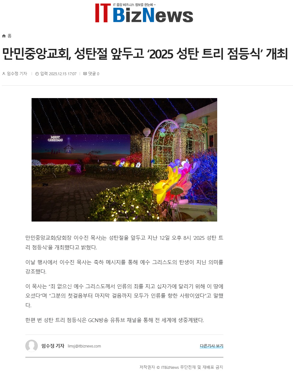 ¸¸¹ÎÁß¾Ó±³È¸, ¼ºÅºÀý ¾ÕµÎ°í '2025 ¼ºÅº Æ®¸® Á¡µî½Ä' °³ÃÖ