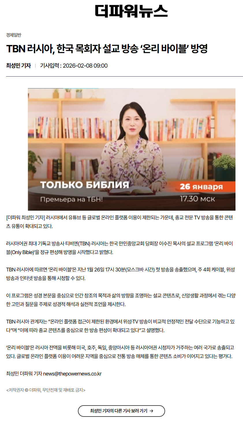 TBN ·¯½Ã¾Æ, Çѱ¹ ¸ñȸÀÚ ¼³±³ ¹æ¼Û '¿Â¸®