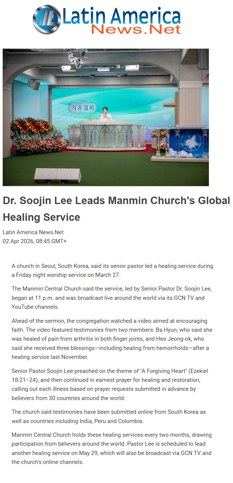 Dr. Soojin Lee Leads Manmin Church's Global Healing Service