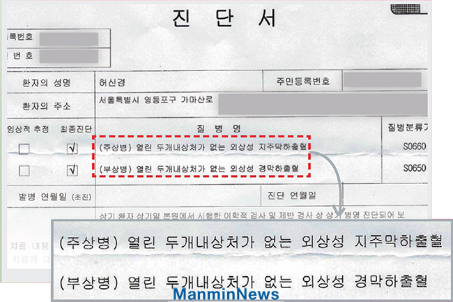 À̳¯ °Ë»ç °á°ú, ÀÇ»ç´Â ÃâÇ÷ÀÌ Àǽɵȴٸç ÀÔ¿øÇÏ¿© MRI Á¤¹Ð°Ë»ç¸¦ ÇØº¸ÀÚ°í Çß½À´Ï´Ù. MRI ÃÔ¿µ °Ë»ç °á°ú, '¿Ü»ó¼º ÁöÁÖ¸·ÇÏÃâÇ÷'°ú '°æ¸·ÇÏÃâÇ÷'·Î 6ÁÖ Áø´ÜÀÌ ³ª¿Ô½À´Ï´Ù. »ç°í Á÷ÈÄ ´çȸÀå´ÔÀÇ È¯Àڱ⵵¸¦ ¹ÏÀ½À¸·Î ¹Þ¾Ò±â¿¡ ´ÙÇàÈ÷ ¼ö¼úÀº ¸éÇÒ ¼ö ÀÖµµ·Ï Çϳª´Ô²²¼ ÁöÄÑÁÖ¼ÌÁö¸¸, ÀÇ»ç´Â ³ú¸¦ ´ÙÃÄ ¸Ó¸®°¡ Èçµé·È±â ¶§¹®¿¡ ¿©·¯ ÈÄÀ¯ÁõÀÌ ÀÖÀ» ¼ö ÀÖ¾î À§ÇèÇÑ »óȲÀ̶ó°í Çß½À´Ï´Ù.