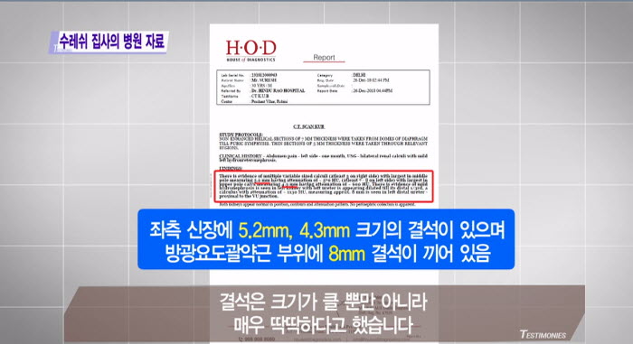 그러던 2018년 12월 3일, 극심한 통증을 느껴 병원에 갔더니 검사 결과 신장에 결석이 있다는 것이었습니다.