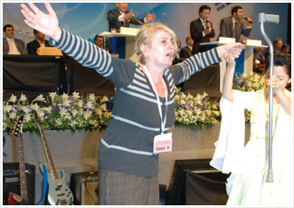 В завершение проповеди д-р Джей Рок Ли горячо молился о больных. Зал буквально сразу же наполнился пламенными деяниями Святого Духа. Большинство присутствовавших с верой приняли молитву. Сразу же после молитвы те, кто получил исцеление, вышли вперед. Люди с различными увечьями отбросили свои костыли, встали с инвалидных колясок, к слабовидящим вернулось зрение, и они избавились от очков. Люди, вышедшие к алтарю, свидетельствовали о том, что во время молитвы они почувствовали работу пламени Святого Духа во всем теле, и болезни отступили.