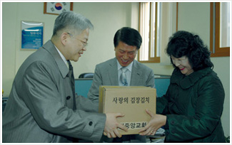23-го - 24 ноября Объединенная женская миссия (президент - старшая дьяконисса Хён Сук Чо) прямо во дворе церкви провела уже двенадцатую по счету акцию «Поделись кимчи с любовью». Члены женской миссии, которым помогали 600 добровольцев, приготовили «кимжанг кимчи» (кимчи, заготовленная на зиму) и разделили ее между 850 малоимущими семьями прихожан церкви, районным Центром занятости инвалидов, расположенным в Онсу-Тон, Гуро-гу, и нуждающимися жителями района Шиндебан-2Тон, Тонджаку, в Сеуле. Старшая дьяконисса Ха Сон Хвон, руководившая этой акцией, сказала: «Старший пастор молился о том, чтобы была хорошая погода, чтобы мы купили хорошие продукты по доступной цене, и о здоровье всех участников. Как он и просил в молитвах, погода была прекрасной, нам удалось также купить высококачественные продукты по приемлемой цене. Мы надеемся, что наша кимчи согреет сердца людей, которые будут ее есть». Кимчи упаковали в коробки по 15 кг, и 24 ноября, в 16 часов 30 минут, начали ее развозить, сначала доставив по адресу Шиндебан-2Тон, потом - в Центр занятости инвалидов, и затем - многим нуждающимся семьям. Акция завершилась 25 ноября. Госпожа Чун Хи Ан, президент женского собрания «Шемол», сказала: «Мы благодарим Центральную церковь «Манмин» за чуткое отношение к нуждающимся людям, проживающим в нашем районе. Мы сделаем все, чтобы они почувствовали любовь членов нашей церкви ».