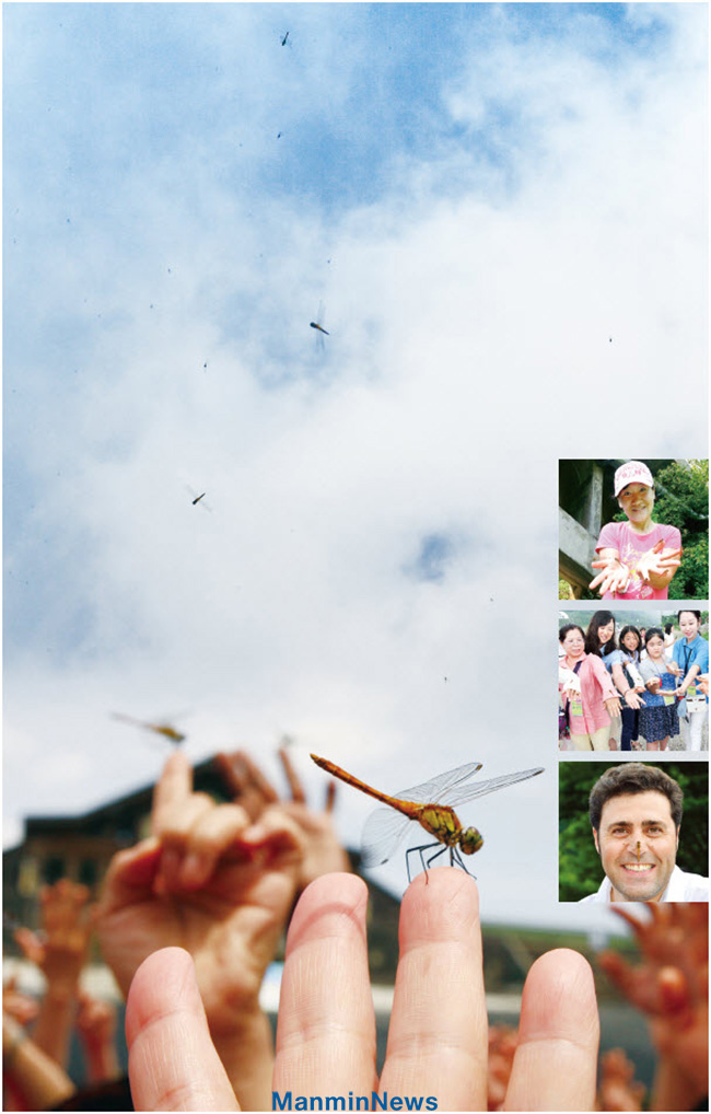 Однако с членами «Манмин», живущими как в Корее, так и за ее пределами, этим летом произошло нечто невероятное: прилетевшие стрекозы стали дружелюбно садиться на них. В Библии рассказывается о том, как Израильтяне, идя по пустыне, ели манну и перепелов, сошедших с небес. Абсолютным подтверждением достоверности этих событий являются стрекозы, которые, сойдя с небес, делятся любовью с членами «Манмин».