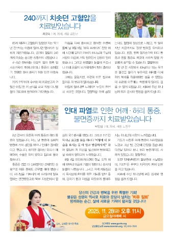 통증은 점점 더 심해졌지만 경제적인 상 배 때부터 마음에 기쁨이 임하더니 감사의 데, 기도받은 후부터 지금까지 밤에 단잠